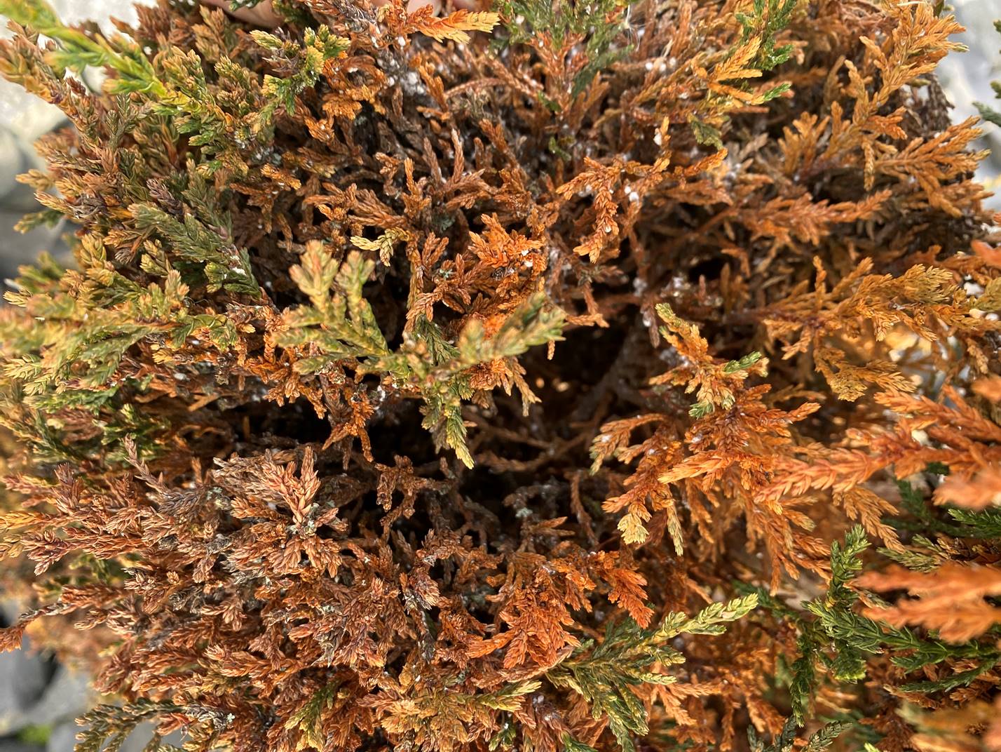 meine seit über 10 Jahre liebevoll gehegten Thujas haben einen Schädlingsbefall, den ich nicht wegbekomme.