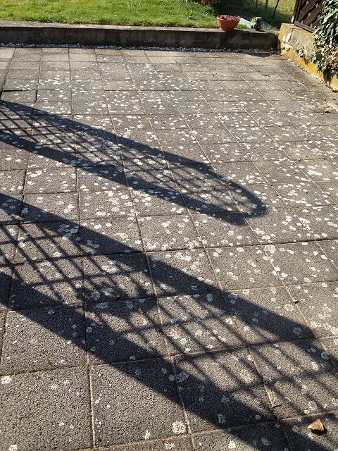 es kann sich hierbei entweder um Flechten oder um Mineralausblühungen handeln. Bevor du beginnst, solltest du die Verträglichkeit testen - "vertragen" die Steine das Mittel, welches du verwenden möchtest.