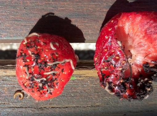 Habe gestern bei den Späterdbeeren mit Entsetzen winzig kleine Würmer entdeckt, kann mir gar nicht erklären wie die dort hingekommen sind, zerfressen einfach die ganzen Früchte reinbohrenderweise.