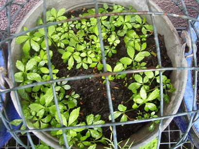 Ich habe meins im Moment in einem Zinkkübel an einer halbschattigen Stelle auf der Terrasse stehen.