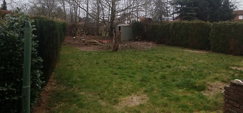 Bild 2) Wie Bild 1 nur unbearbeitet und ungefähr doppelt so groß (bis zur Hecke rechts und weiter nach hinten)