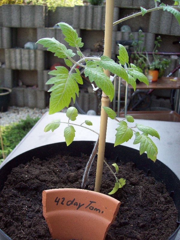 Schau mal das ist eine 42 Day Tomi und damit Buschtomate...nicht ausgeizen.