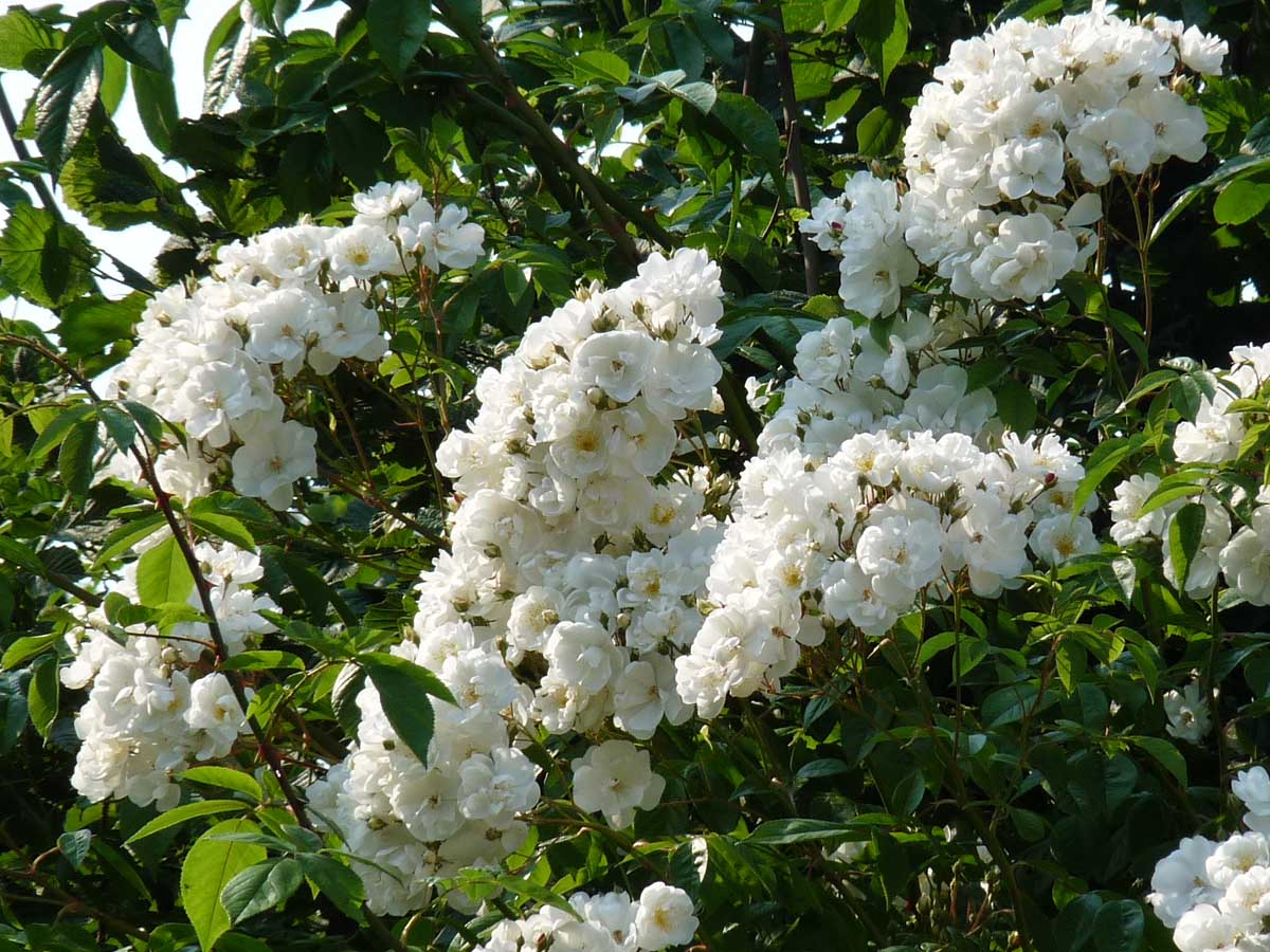 Unbekannte duftende Rose Staudenclematis Ramblerrose "Bobby James"