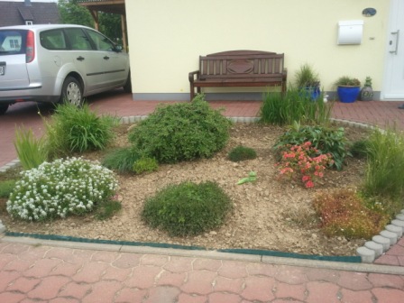Ich muss dazu sagen, dass die meisten Planzen die bereits drin sind von uns einfach bei Einzug in den Neubau gesetzt worden sind, weil wir die von meiner Mutter übernommen haben, die ihren Garten leider aufgeben musste. Andere Pflanzen wurden nach Aussehen gekauft und fast jedes Jahr ersetzt. Als absoluter Neuling macht man halt die Fehler nicht auf die Bodenqualität, Ansprüche der Pflanzen, Standort, größe der ausgewachsenen Pflanzen etc. zu achten und zahlt in 95% der Fälle drauf oder muss immer mal wieder was versetzen.