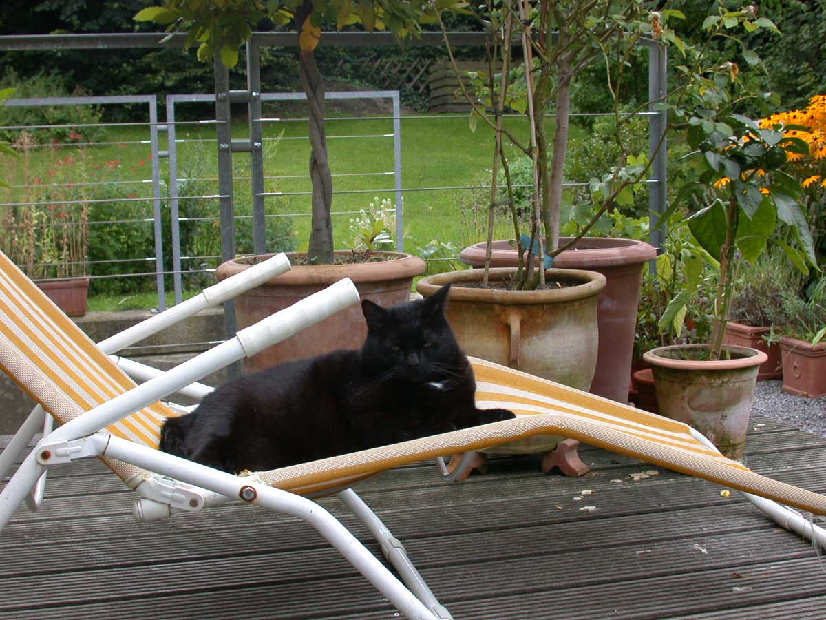 fressen. Jeden Tag dreht sie ihre Runden durch den Garten, besucht ab un zu die Nachbarsgärten und ärgert liebend gerne den Nachbarshund Jerry. l :lol: . Mit Vorliebe belegt sie meine Gartenliege und kann dort Stundenlang ihr Nickerchen abhalten. Ich hoffe sie bleibt uns noch lange erhalten.