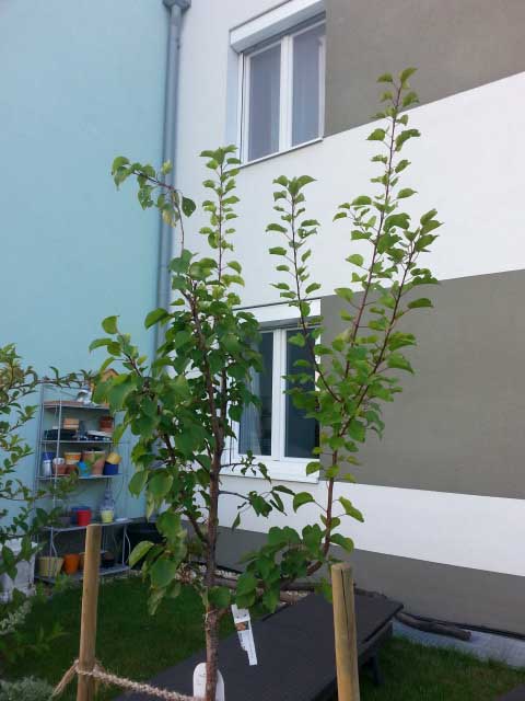 ich stehe vor dem Problem, meinen jungen Marillen-(Aprikosen)-Baum zu schneiden. Der Baum wurde im Mai gepflanzt, in der Baumschule wurde noch kurz vorher ein Schnitt durchgeführt. Nun hat der Baum diesen Sommer ganz schön zugelegt und ist brav gewachsen.